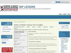 First graders experiment with different states of matter in order to observe the changes in matter. In this states of matter lesson plan, 1st graders see and explain how solids, liquids, and gases change.
