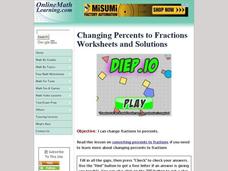 In this percent worksheet, students convert percents to fractions. This one-page worksheet contains 10 problems. Answers are provided.