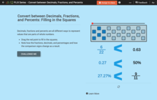 An interactive equipped with five questions challenges mathematicians to convert between fractions, decimals, and percents. A diagram changes its size to visually depict conversions alongside symbols to compare them. Question types...