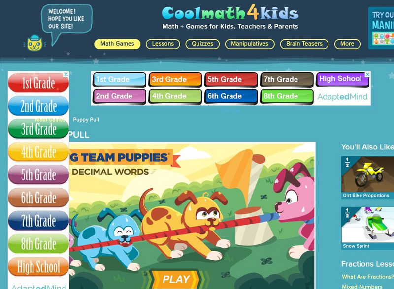 Coolmath: Coolmath4kids: Puppy Pull Decimals