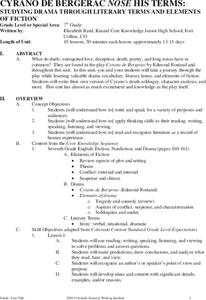 Students use the play "Cyrano de Bergerac" to identify and analyze drama vocabulary, literary terms and elements of fiction. They write an original version of scenes from the play and develop a character analysis for the lead.