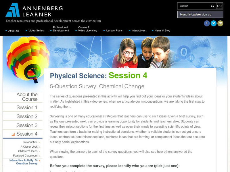 Annenberg Learner: 5 Question Survey: Chemical Change