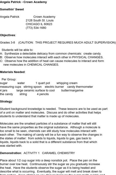 This site provides a lesson plan using candy making to demonstrate physical and chemical changes in matter. Includes directions to make caramel and rock candy.