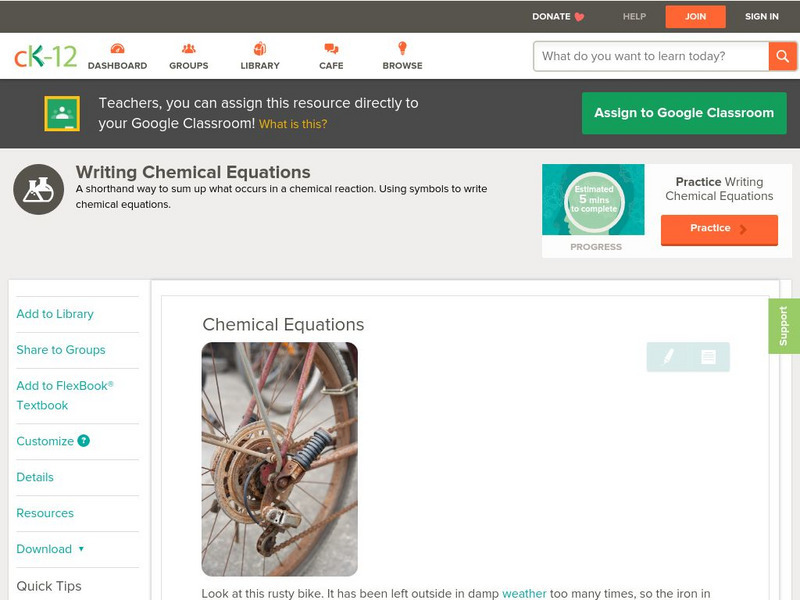 [Free Registration/Login may be required to access all resource tools.] An overview of chemical equations.
