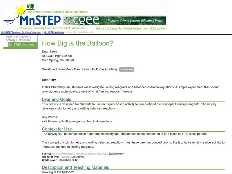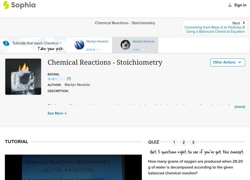 [Free Registration/Login may be required to access all resource tools.] In this learning module, students will learn how to calculate and account for the amounts of reactants and products in a given chemical reaction.