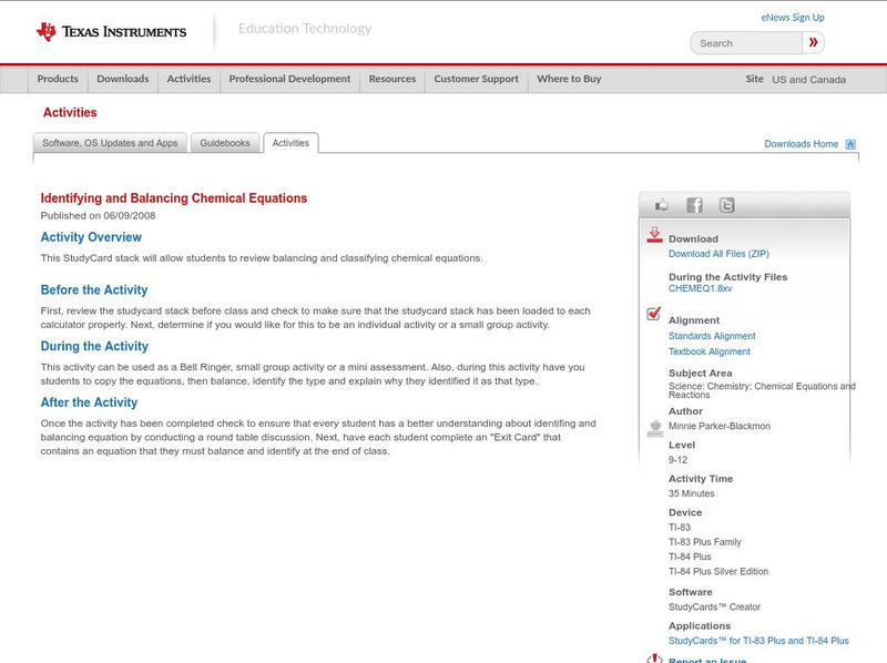 Texas Instruments: Identifying and Balancing Chemical Equations