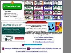 In this chemical equations worksheet, students are given 37 word equations and they complete each by filling in the product or reactant that is missing using words.