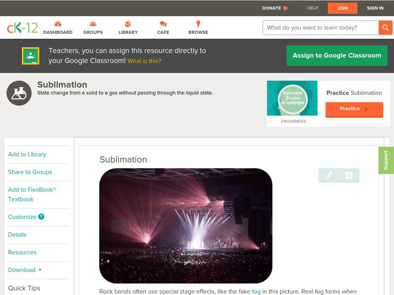 [Free Registration/Login may be required to access all resource tools.] Definition and an example of sublimation, and conditions under which sublimation of snow and ice occur.