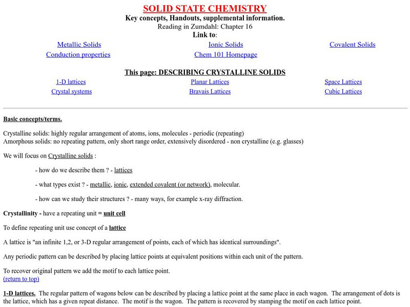 This site contains in-depth information on crystalline solids. Includes basic concepts, pictures, learning graphs, and useful tools.