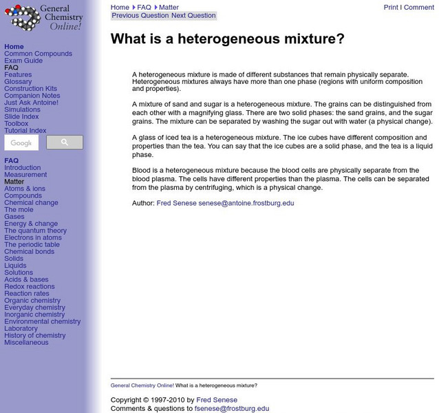 This is a brief definition from Frostburg State University of a heterogeneous mixture. Includes commonly known examples of these mixtures.