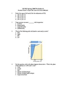 In this chemistry practice worksheet, students select the correct response to the given questions. Students apply knowledge about the states of matter, finding vapor pressure and atmospheric pressure.
