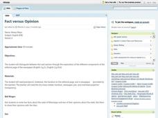 Young learners distinguish statements as fact or fiction. After exploring a newspaper, they determine the type of information it contains. They read editorial articles and discuss the differences between the editorial page and the front...