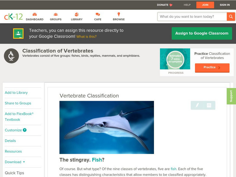 [Free Registration/Login may be required to access all resource tools.] Covers the nine classes of vertebrates and their distinguishing traits.