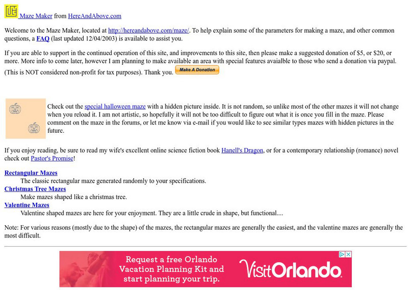 Create your very own maze! There is a wide variety of maze templates available to generate mazes. Make Christmas tree mazes, Valentine mazes, or rectangular mazes. You can also print your maze.