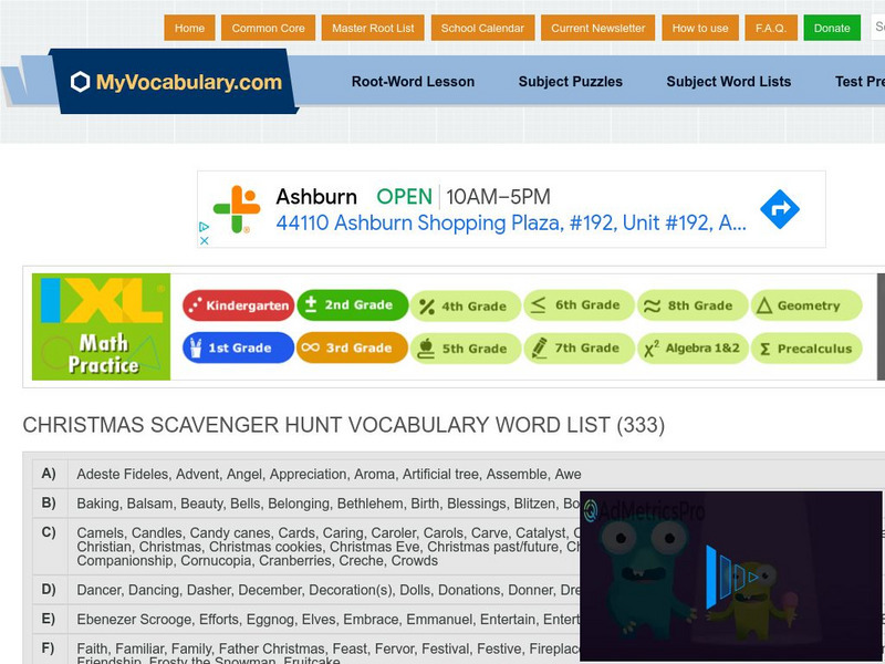 This is an outline for a Christmas Scavenger Hunt activity using 333 vocabulary words pertaining to the season. It also provides links to Christmas word puzzles.