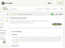 Students study the properties of circles. In this circles lesson, students read a word problem about circles. Students watch a video about the activity and then practice drawing the circle solution to the problem. Students watch another...