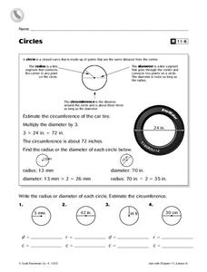 In this circumference of a circle instructional activity, 10th graders solve 10 different problems that include various illustrations of circles. First, they multiply pi by the given diameter of the circle. Then, students determine the...