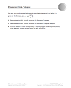 Trigonometry teachers often go off on a tangent, and here's a worksheet that proves it! First, young mathematicians use a formula with tangent to prove a formula correct for area. Then, they draw conclusions about the area of a circle...