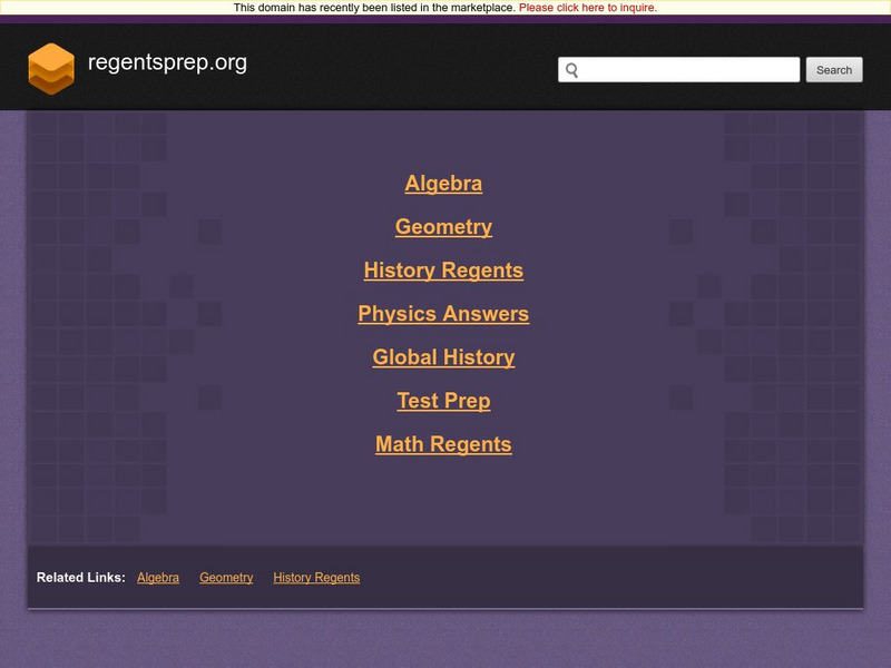 Choose from three different practice exams that cover all Integrated Algebra topics reviewed in the Regents Exam Prep Center website: number theory, operation, variables, expressions, equations, inequalities, patterns, functions,...