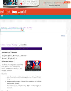 Learners investigate music of the Civil War era and explore how music can be used to arouse and express emotion. They identify a rhythmical musical pattern and match lyrics to it.