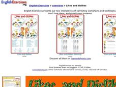 For this likes and dislikes worksheet, students write their levels of liking something next to the activity, fill in the blanks to sentences, and order sentences. Students complete 30 problems total.