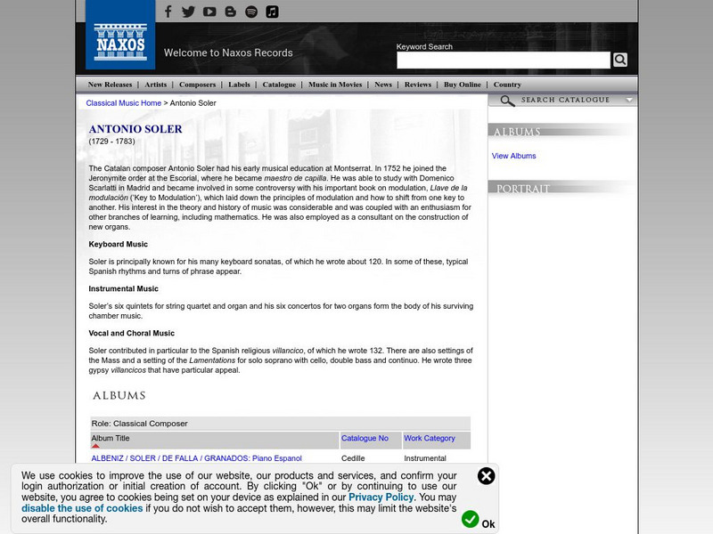 Naxos.com offers a biography on Antonio Soler as well as information on his keyboard and vocal music. The site also provides links to recommended recordings.