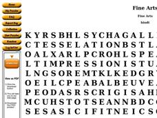 In this fine arts activity, students identify and locate vocabulary terms and artists of the visual arts. There are 54 terms and/or names located in the puzzle.