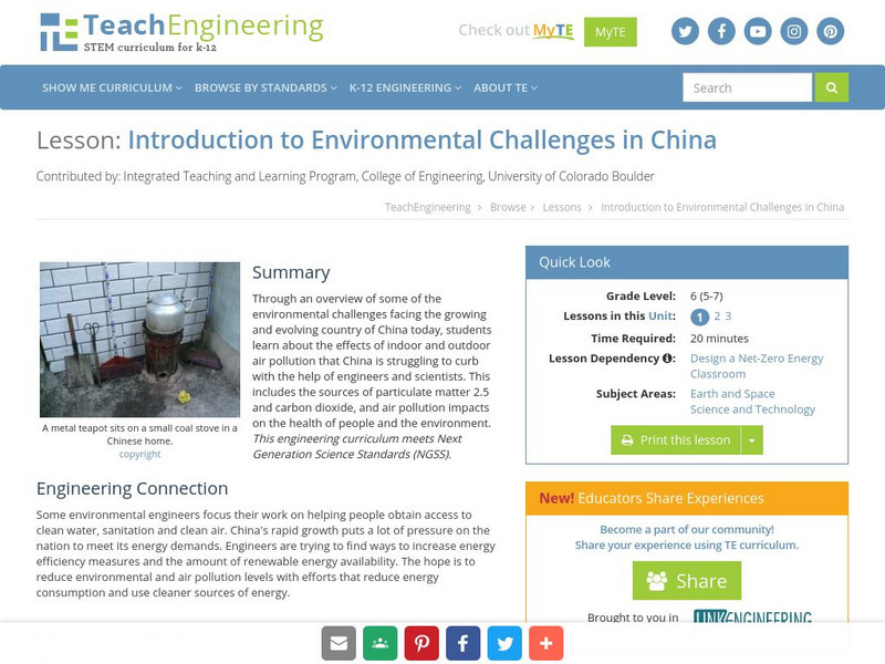 Through an overview of some of the environmental challenges facing the growing and evolving country of China today, learners learn about the effects of indoor and outdoor air pollution that China is struggling to curb with the help of...