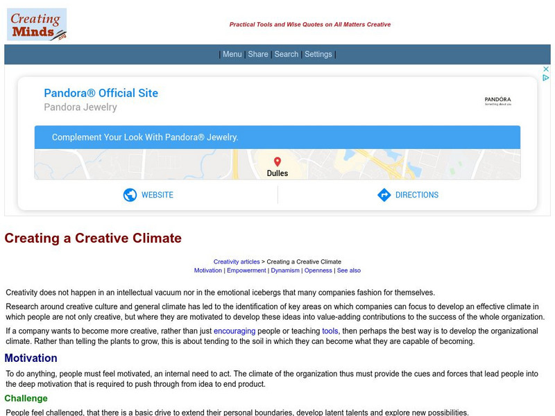 Written from a business perspective, this sites ideas about creating a creative atmosphere can easily be adapted to any classroom.