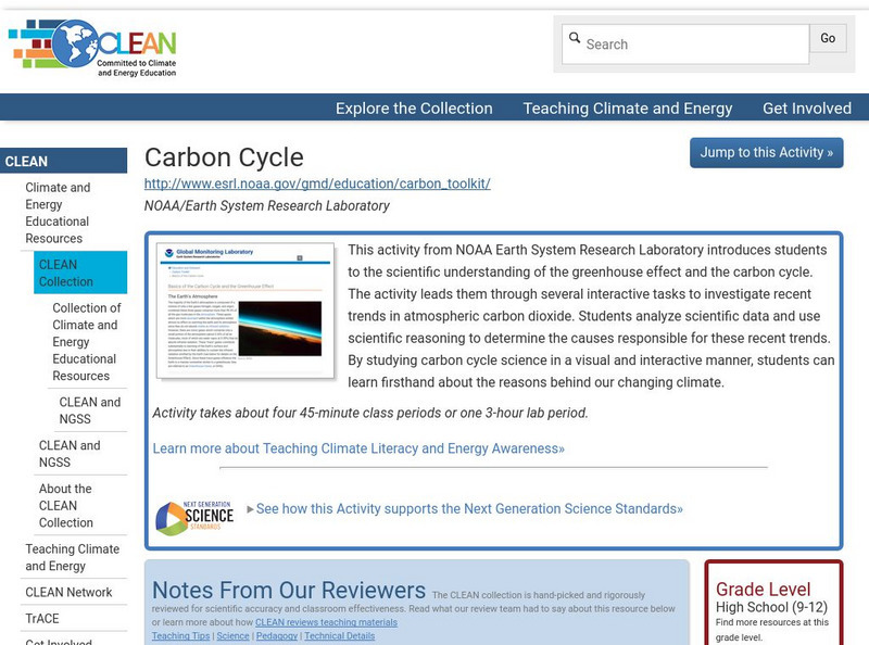 This activity from NOAA Earth System Research Laboratory introduces students to the current scientific understanding of the greenhouse effect and the carbon cycle. The activity leads them through several interactive tasks investigating...