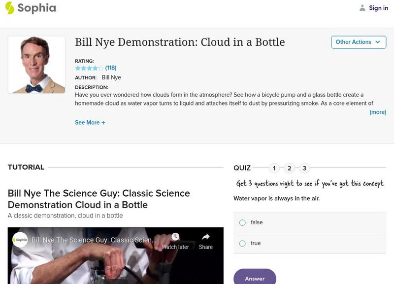 Watch and learn with Bill Nye the Science Guy as he demonstrates how clouds form in the atmosphere using a glass bottle and a bicycle pump. [2:10]