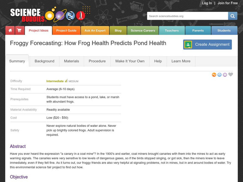 Science Buddies: Froggy Forecasting: How Frog Health Predicts Pond Health