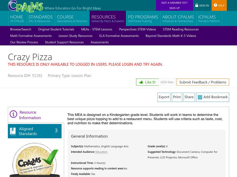 [Free Registration/Login Required] This lesson engages students with working in teams to determine the best unique pizza topping to add to a restaurant menu. Students will use criteria such as taste, cost, and nutrition to make their...