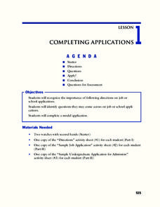Following directions is an important skill for any grade level. High schoolers work follow directions to an activity that focuses on filling out college and job applications.
