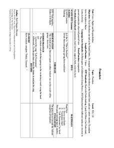 Students brainstorm a list of the freedoms they have living in the United States. In groups, they compare and contrast these freedoms with those of their home country. After completeing a worksheet, they examine lyrics to songs to...