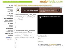 In this identification of sentence errors worksheet, learners choose the answer that best corrects the grammatical errors in each sentence. Students have 10 minutes to answer 15 questions in this SAT practice worksheet.