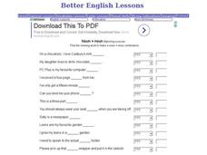 In this revision worksheet, students correct the mistakes in sentences, combine sentences, insert verbs in sentences, and more. Students complete 4 problems total.