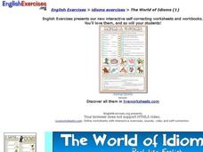 In this language arts learning exercise, students discover that idioms are spoken or written sentences where the meaning is not obvious from the individual words used. Students read 10 idioms and match them to their meanings.