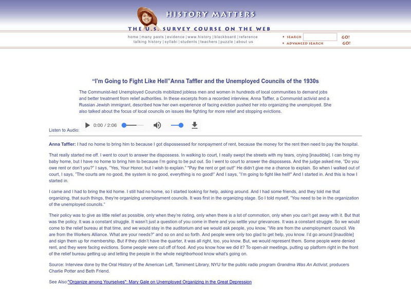 This account by Communist activist Anna Taffler details her activities working with the Communist-led Unemployment Councils of the 1930s. These organizations worked in hundreds of local communities to demand jobs and better treatment...