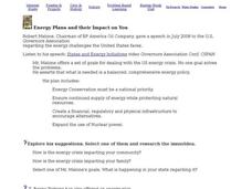 In this energy instructional activity, students read articles on the internet about energy and answer short answer questions. Students answer 10 questions total.