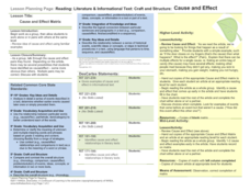 Study cause and effect in both literature and informational text with a lesson designed for several different reading levels. After kids review the concept of cause and effect, they read an article or story and note the causes and...