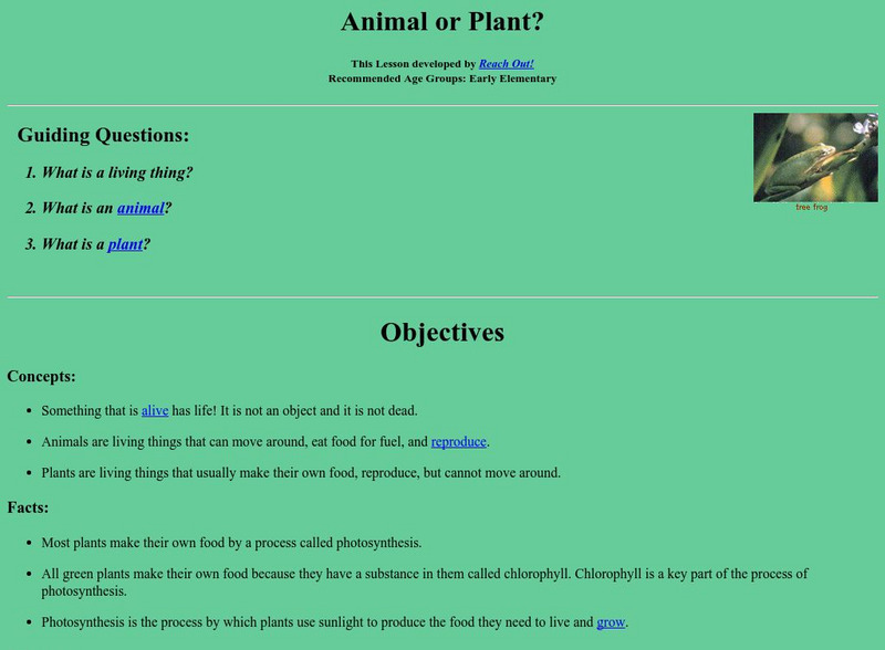 This site provides a basic lesson plan from Reach Out! Michigan comparing plants to animals.