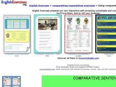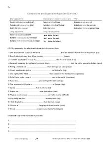 In this adjective activity, students read about comparative and superlative forms, then complete sentences correctly. Students then make up some sentences of their own using comparative and superlative adjectives.