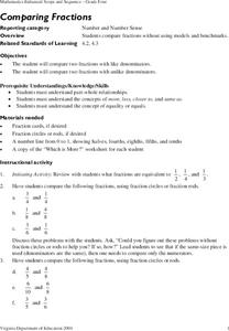 Learners compare three sets of fractions using the greater than, less than, and equal signs. To justify their answers, a drawing is also required that illustrates their reasoning. Including fractions with like and unlike denominators, as...
