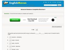 In this online interactive grammar skills activity, students examine 10 sentences that are missing words and select the appropriate words to complete each of the sentences and match them to the sentences. Student answers are...