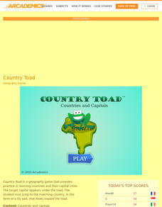 Hop from country to country to practice knowledge of international capitals using an interactive video game. Pupils take control of frog avatars and direct them to leap from the name of a capital to its home country. The video game...