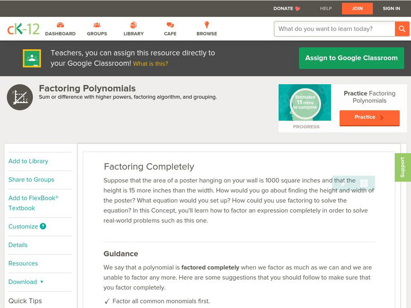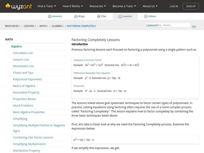 [Free Registration/Login may be required to access all resource tools.] Learn how to factor polynomials completely.