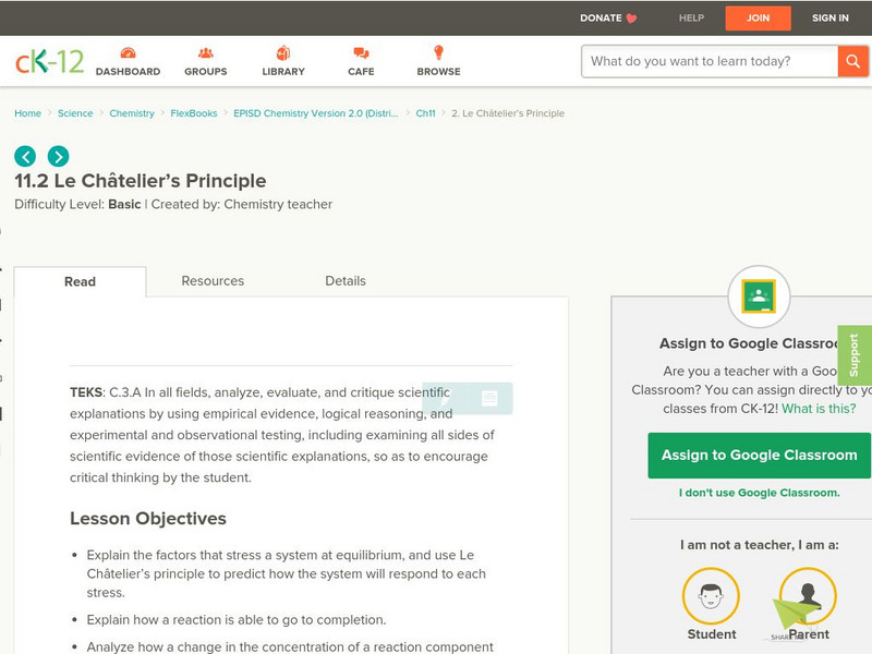[Free Registration/Login may be required to access all resource tools.] Students explain the factors that stress a system at equilibrium and use Le Chatelier's principle to predict how the system will respond to each stress. They will...