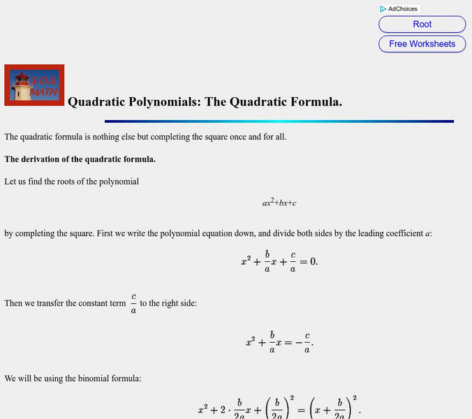 S.o.s. Math: Quadratic Formula: Completing the Square