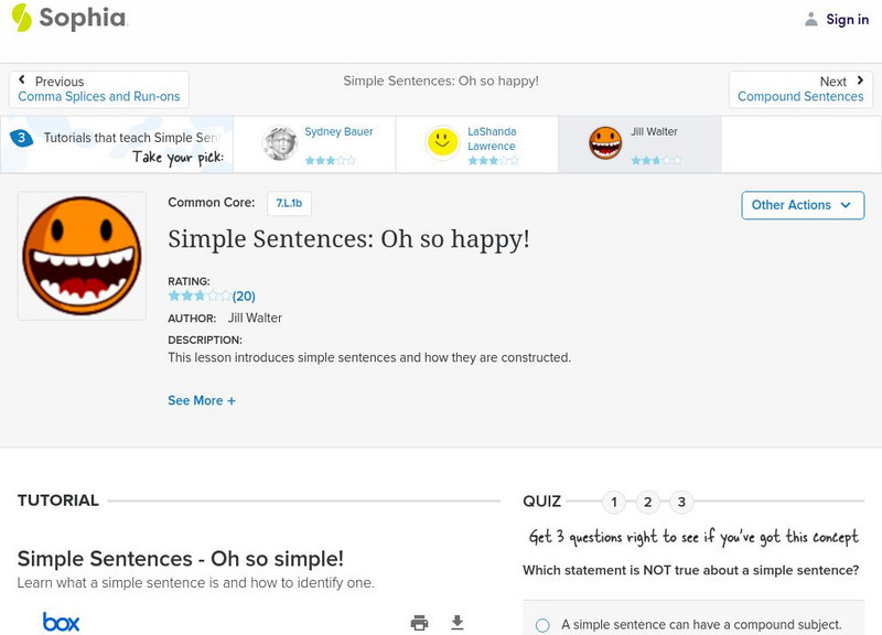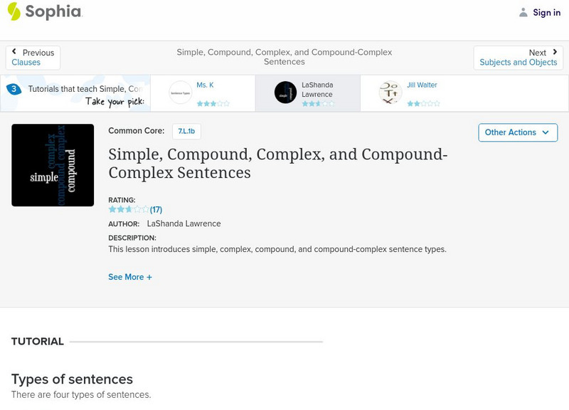 Sophia: Simple, Compound, Complex, and Compound Complex Sentences: Lesson 3